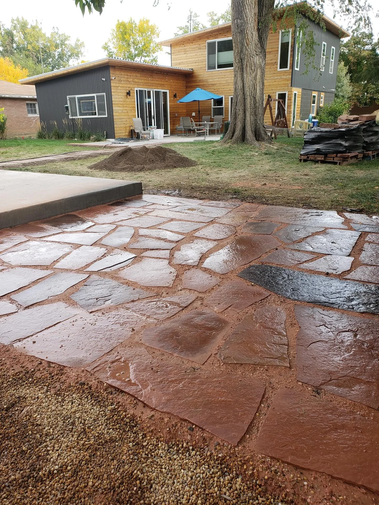 This pathway was falling apart and water was causing destruction on the foundation and stomework. Once the stone was pulled up and much was reclaimed, a concrete pad was poured and the stone was mortar set. We put some water mitigation features into the stone wall and dug in some french drainage.
